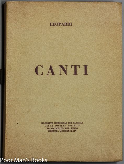 Canti. I - All'Italia. II - Sopra il monumento di Dante che si preparava in Firenze. III - Ad Angelo Mai quand'ebbe trovato i libri di Cicerone della Repubblica. IV - Nelle Nozze Della Sorella Paolina. V - A Un Vincitore Nel Pallone. VI - Bruto Minore. VII - Alla Primavera, O Delle Favole Antiche. VIII - Inno Ai Patriarchi